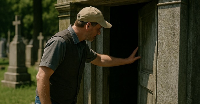 Ο τάφος ήταν παλιός, σκεπασμένος με βρύα, με ξεθωριασμένη επιγραφή: «Οικογένεια Μόρισον».