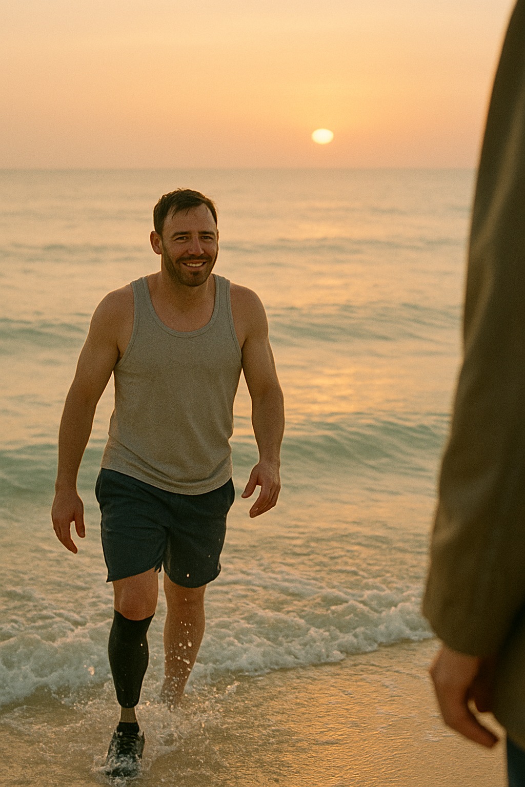 Εκείνος μπήκε στο νερό τελευταίος. Χρειάστηκε χρόνο να προσαρμοστεί, μέχρι το σώμα του να συνηθίσει το βάρος. Το προσθετικό γλίστραγε, ενοχλούσε, το νερό έμπαινε κάτω από το μανίκι — αλλά κολυμπούσε. Όχι όμορφα, όχι γρήγορα — απλά σταθερά.