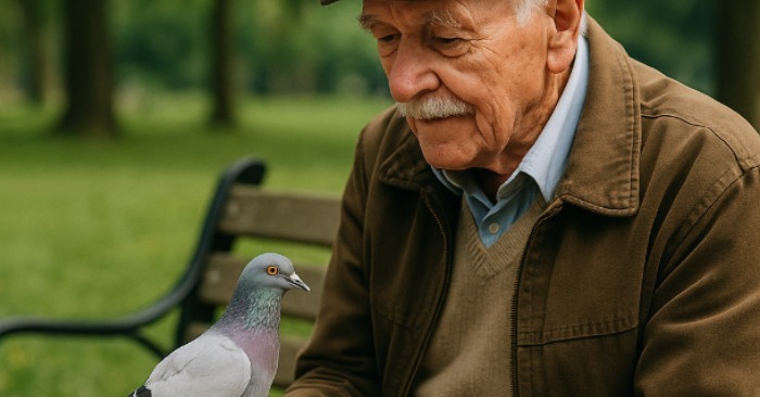 Μια μέρα, στο τέλος του χειμώνα, παρατήρησε ένα περιστέρι – λευκογκρίζο, με ένα λεπτό, γυαλιστερό δαχτυλίδι στο πόδι. Το πουλί φερόταν παράξενα: δεν τσιμπούσε σπόρους, στεκόταν δίπλα του και έμοιαζε να τον κοιτάζει κατευθείαν στα μάτια.