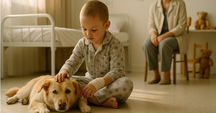 Τώρα η Μάρλι περπατούσε στους λευκούς διαδρόμους με ένα κόκκινο περιλαίμιο και μια ταμπέλα «Θεραπεύτρια». Όταν έμπαινε στην αίθουσα, τα παιδιά γελούσαν — όπως δεν είχαν γελάσει εδώ και πολύ καιρό. Δεν ήξερε τι είναι οι θέσεις ή οι ρόλοι. Απλά ζούσε. Και κάθε της ανάσα έλεγε: «Εγώ έμεινα. Και εσύ θα μείνεις».