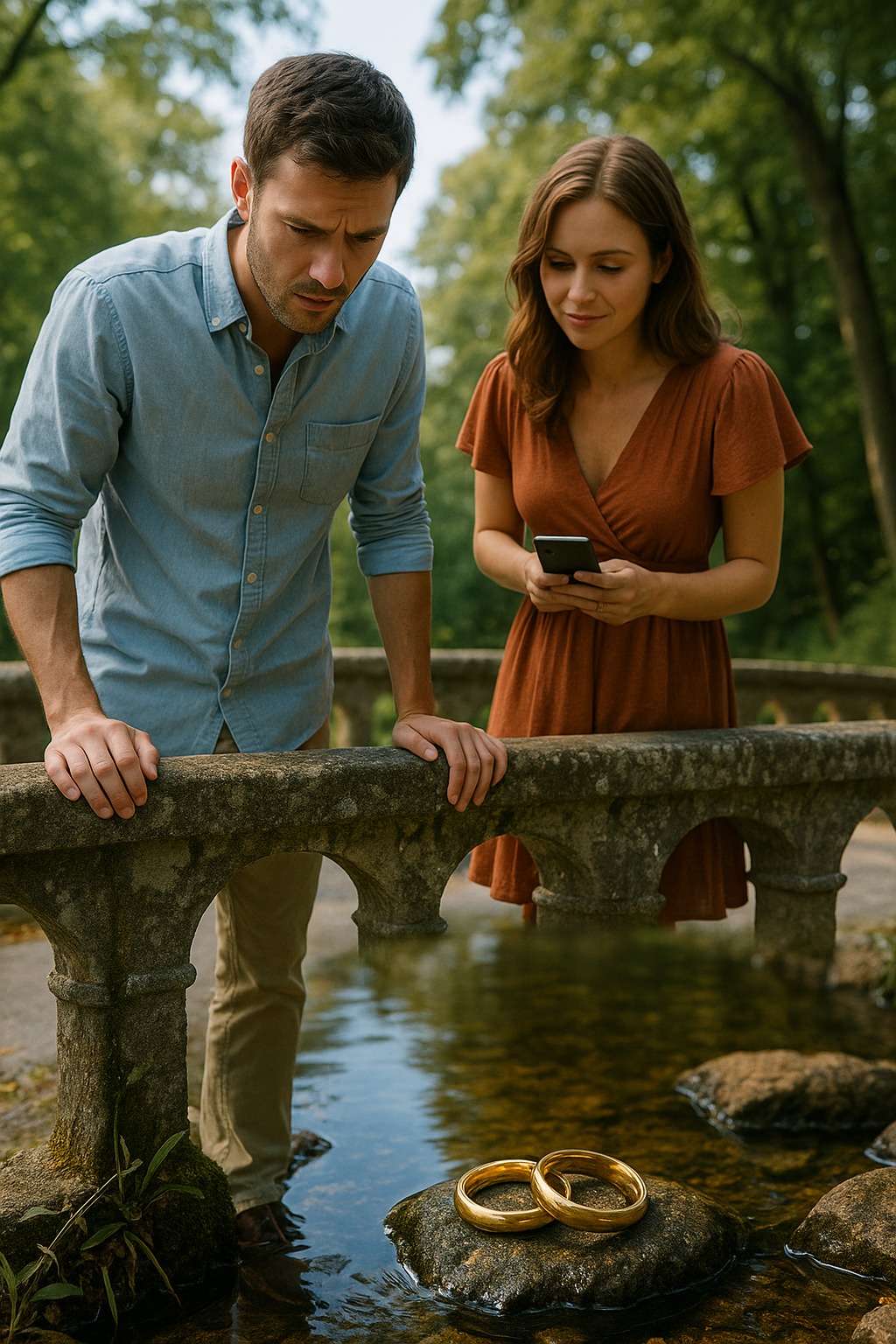 Πάνω σε ένα κλαδί, μπλεγμένο στην όχθη, υπήρχαν δύο βέρες, δεμένες μεταξύ τους,