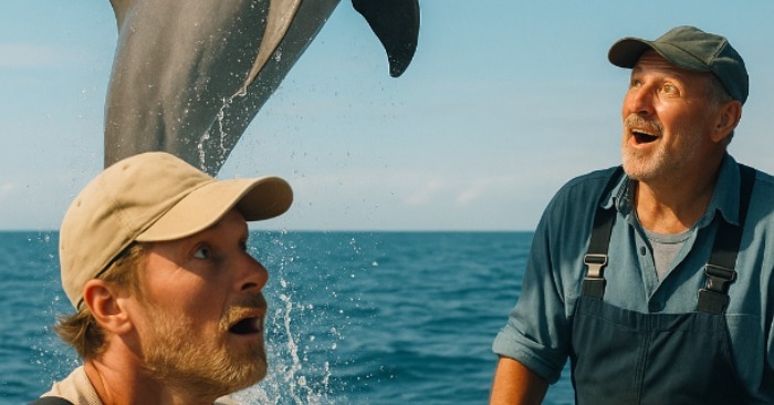 Μια εβδομάδα αργότερα, βγήκαμε ξανά στη θάλασσα. Σε κάποιο σημείο, δίπλα στο σκάφος εμφανίστηκαν δελφίνια. Ήταν τρία. Ανάμεσά τους ήταν και το μωρό μας. Πλησίασε πιο κοντά από όλους, πήδηξε στον αέρα και μας έβρεξε από την κορυφή μέχρι τα νύχια. Και όταν ξαναβγήκε στην επιφάνεια, στα δόντια του είχε ένα παλιό σχοινί — ένα κομμάτι δίχτυ. Το πέταξε κατευθείαν στο κατάστρωμα του σκάφους.
