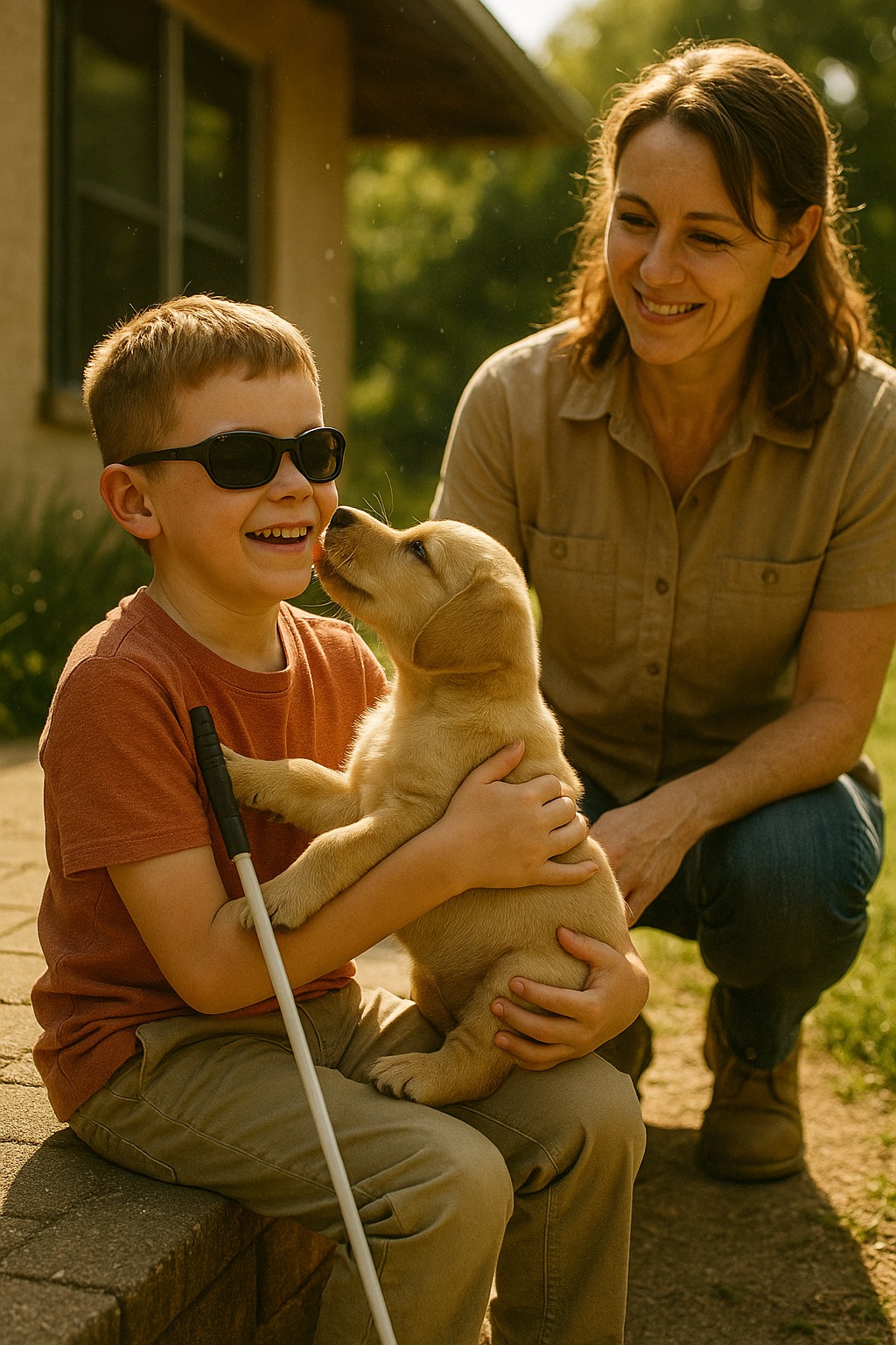 Κάθε πρωί έκαναν την ίδια διαδρομή: το σπίτι, το πάρκο, το παγκάκι δίπλα στο σιντριβάνι, και μετά πίσω. Οι άνθρωποι είχαν συνηθίσει να τους βλέπουν — το αγόρι με το μπαστούνι και το χρυσαφένιο σκυλί που φαινόταν να καταλαβαίνει τα πάντα χωρίς λόγια.