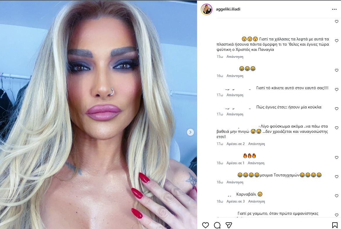 Η γνωστή τραγουδίστρια, που φέτος ετοιμάζει την επιστροφή της με το νέο τραγούδι «Ανεπίτρεπτο», ανάρτησε στις 10 Ιανουαρίου 2026 μια σειρά από φωτογραφίες με τη λεζάντα «Ανεπίτρεπτο», εμπνευσμένη από τον τίτλο του νέου της κομματιού. Παρά το ότι η ανάρτηση ήταν ενδεχομένως να επικεντρωνόταν στη μουσική της καριέρα, τα σχόλια των followers της πήραν άλλη τροπή και η εμφάνιση της Αγγελικής Ηλιάδη βρέθηκε στο επίκεντρο.