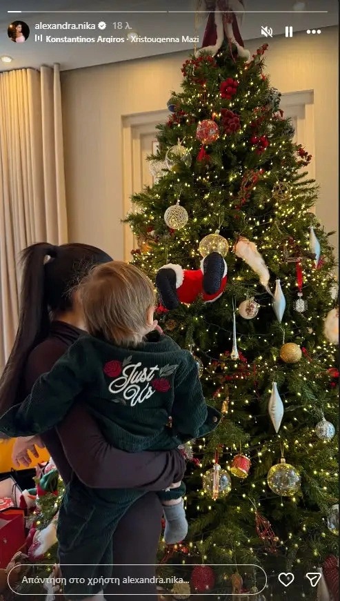 Τις τελευταίες ημέρες, η ίδια μοιράστηκε και με τους διαδικτυακούς της φίλους στιγμιότυπα από αυτές τις οικογενειακές στιγμές. Σε μία από τις αναρτήσεις της στο Instagram, ποζάρει αγκαλιά με τον μικρό Βασίλη μπροστά από το χριστουγεννιάτικο δέντρο, σε ένα καρέ γεμάτο ζεστασιά.