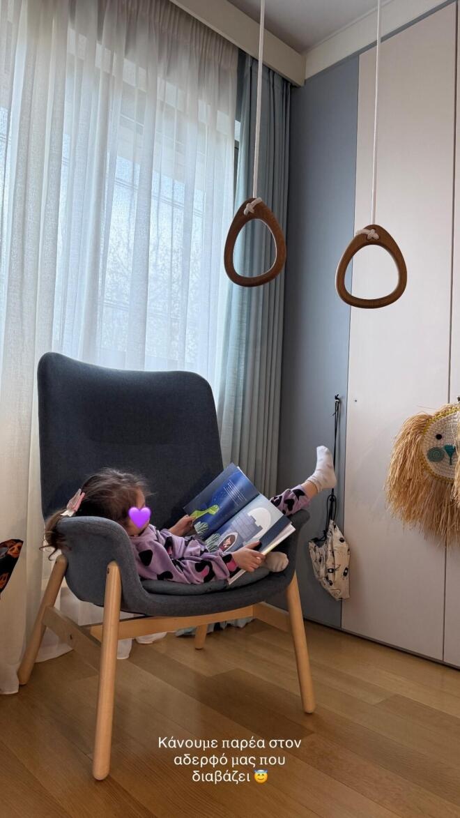 Στο story που ανέβασε, η Αθηνά Οικονομάκου έγραψε: «Κάνουμε παρέα στον αδερφό μας που διαβάζει», δίνοντας μια μικρή ματιά στην καθημερινότητά τους.