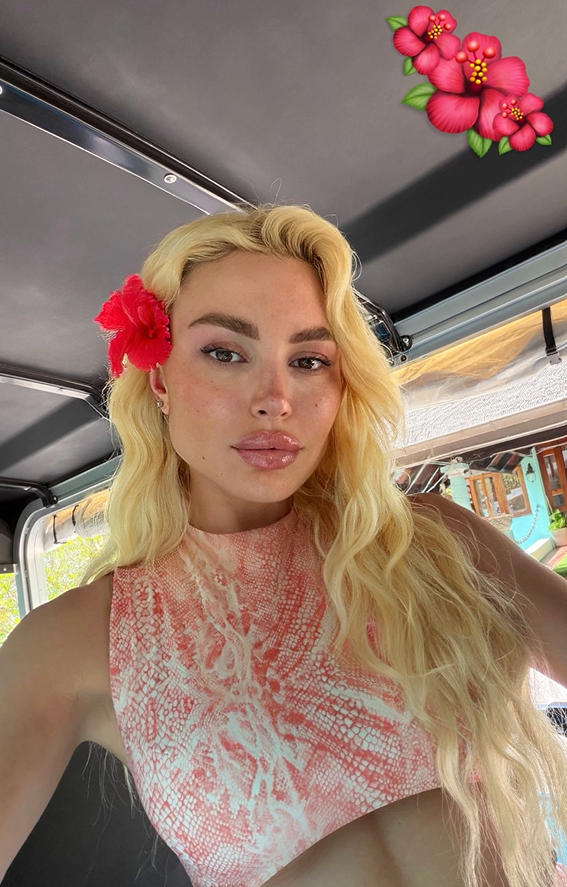 Μέσα από τα social media, μοιράζεται εικόνες από τις βόλτες της στις αμμώδεις παραλίες, με τα τιρκουάζ νερά και τους κοκοφοίνικες να δημιουργούν ένα εντυπωσιακό σκηνικό. Η ηλιοθεραπεία και οι στιγμές δίπλα στη θάλασσα έχουν την τιμητική τους.