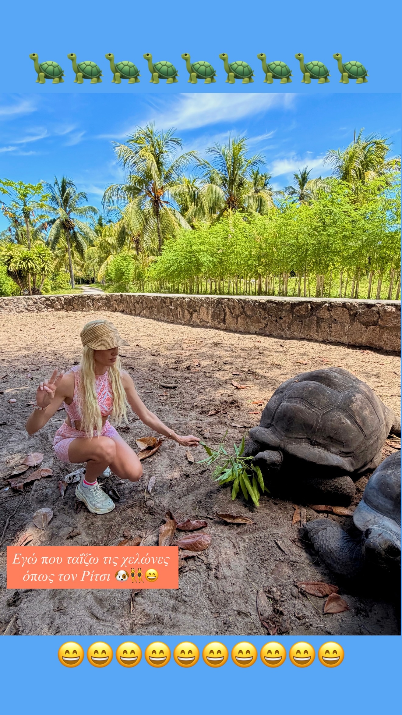 Παράλληλα, ήρθε σε επαφή με τη φύση του νησιού και τα ζώα, δείχνοντας μια διαφορετική πλευρά του ταξιδιού της, πέρα από την πολυτέλεια.