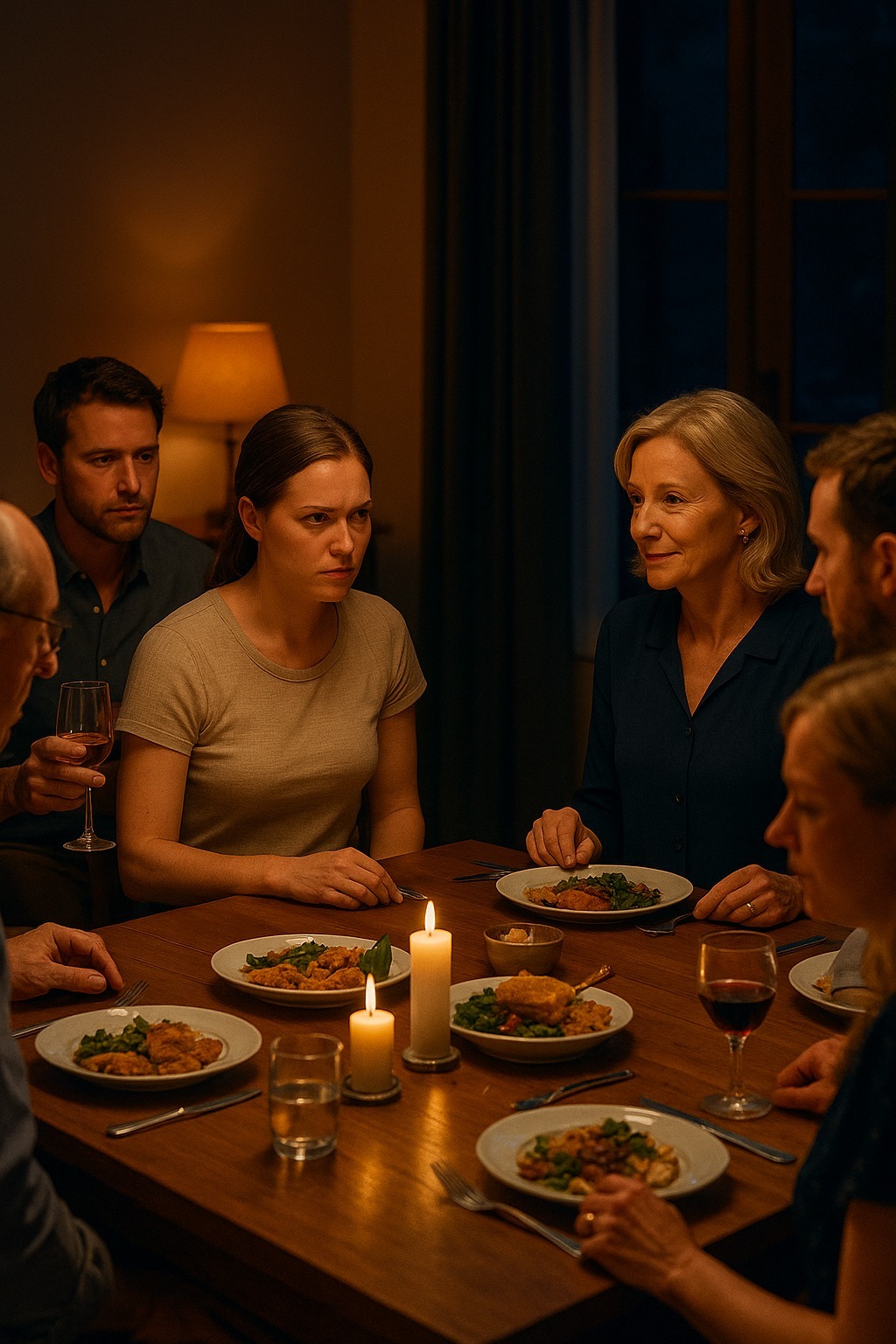Μεγάλη οικογένεια, κεριά, κρασί, γέλια.