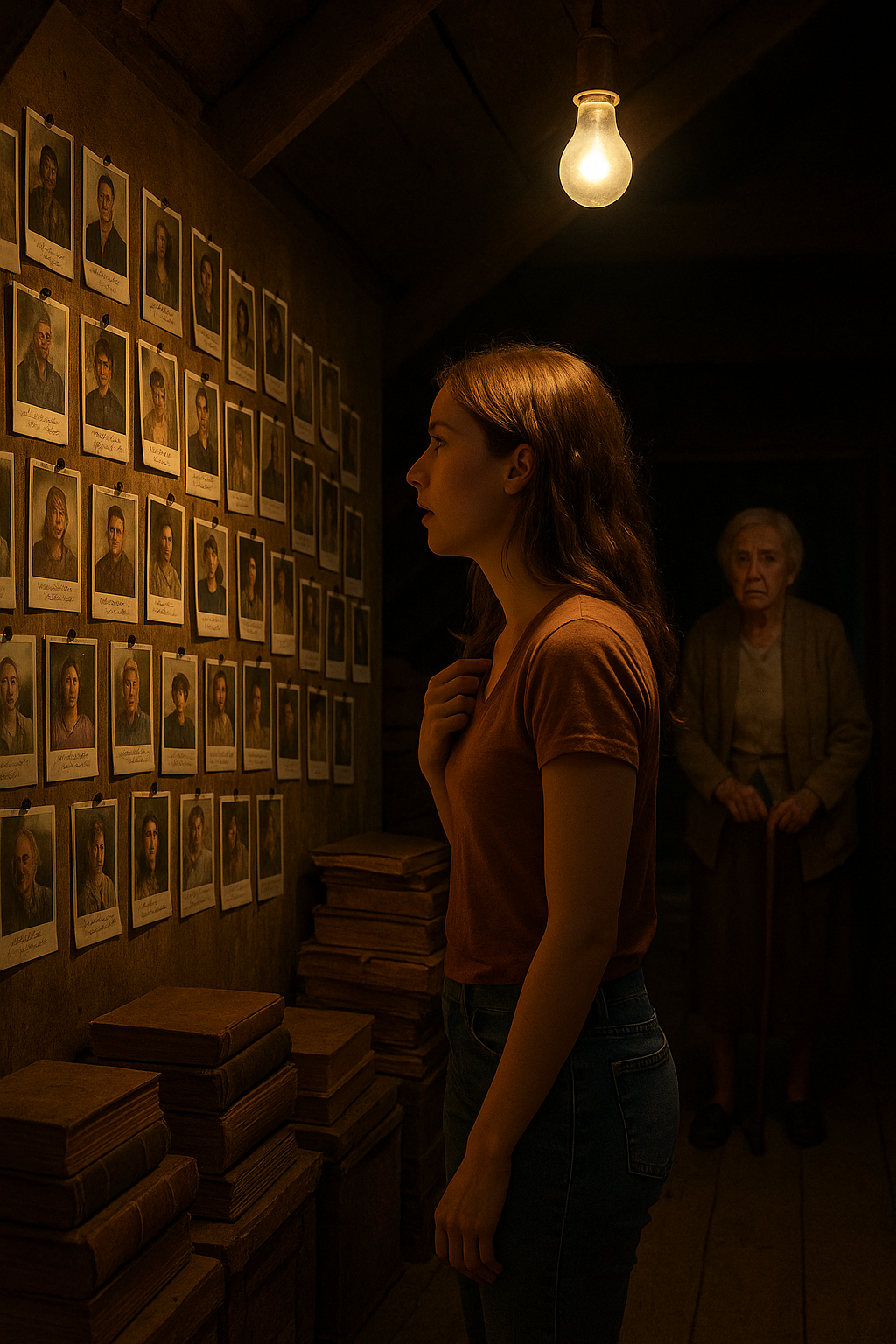 Η Τζένα ανέβηκε τη στενή σκάλα προς τη σοφίτα. Ο αέρας έγινε πιο βαρύς, πιο ζεστός. Στην κορυφή, τράβηξε το κορδόνι της μοναδικής κρεμασμένης λάμπας.