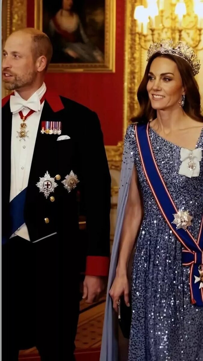 Στο συμπόσιο, που διοργανώθηκε προς τιμήν της επίσκεψης του προέδρου της Γερμανίας, παρευρέθηκαν ο Κάρολος Γ’, η Καμίλα και ο πρίγκιπας Γουίλιαμ. Αλλά ήταν η Κέιτ, με το πολυτελές μπλε φόρεμα-κάπα, που έκλεψε την παράσταση. Η εμφάνισή της ήταν το πιο συζητημένο θέμα της βραδιάς.