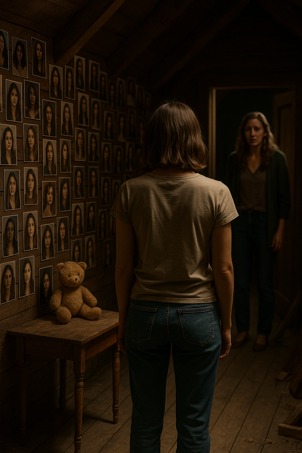 Η καρδιά της χτυπούσε δυνατά καθώς ανέβαινε τη στενή σκάλα. Ο αέρας ήταν μουχλιασμένος, βαρύς από τη σκόνη. Άναψε το φως και πάγωσε.