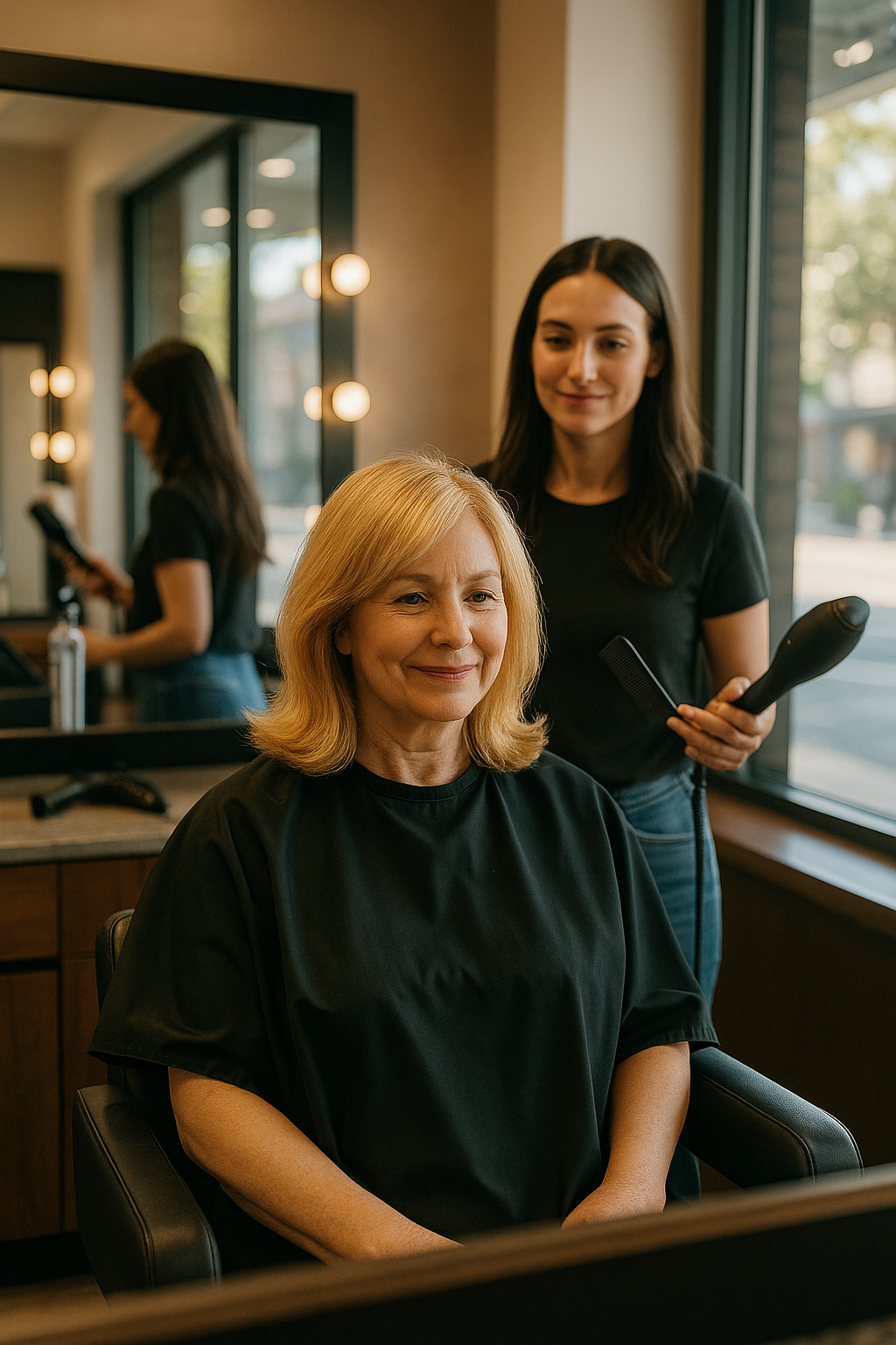 Το σαλόνι ήταν θορυβώδες, γεμάτο μυρωδιά βαφής και καφέ. Στους καθρέφτες καθρεφτίζονταν ξένες συζητήσεις, λαμπερά σεσουάρ και μια ζωή πιο δυνατή απ’ όσο ήθελε.