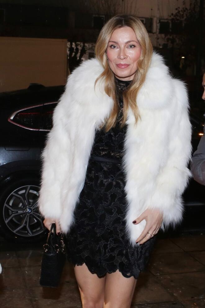 Το styling ολοκληρώθηκε με μαύρες γόβες και τσάντα στον ίδιο τόνο, διατηρώντας το σύνολο αυστηρά ισορροπημένο και κομψό. Η λευκή γούνα που επέλεξε να φορέσει από πάνω έδωσε την απαραίτητη αντίθεση, φωτίζοντας το look και προσθέτοντας μια αίσθηση πολυτέλειας και λάμψης χωρίς υπερβολή.