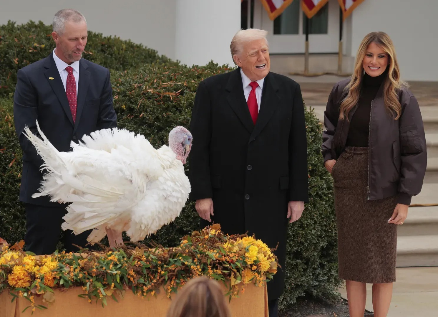 Την επόμενη μέρα, η πρώτη κυρία εμφανίστηκε ξανά στο κοινό — αυτή τη φορά σε επίσημη εκδήλωση για την Ημέρα των Ευχαριστιών στον Ροζ Κήπο. Ο πρόεδρος Ντόναλντ Τραμπ πραγματοποίησε την κλασική τελετή χάριτος της γαλοπούλας.