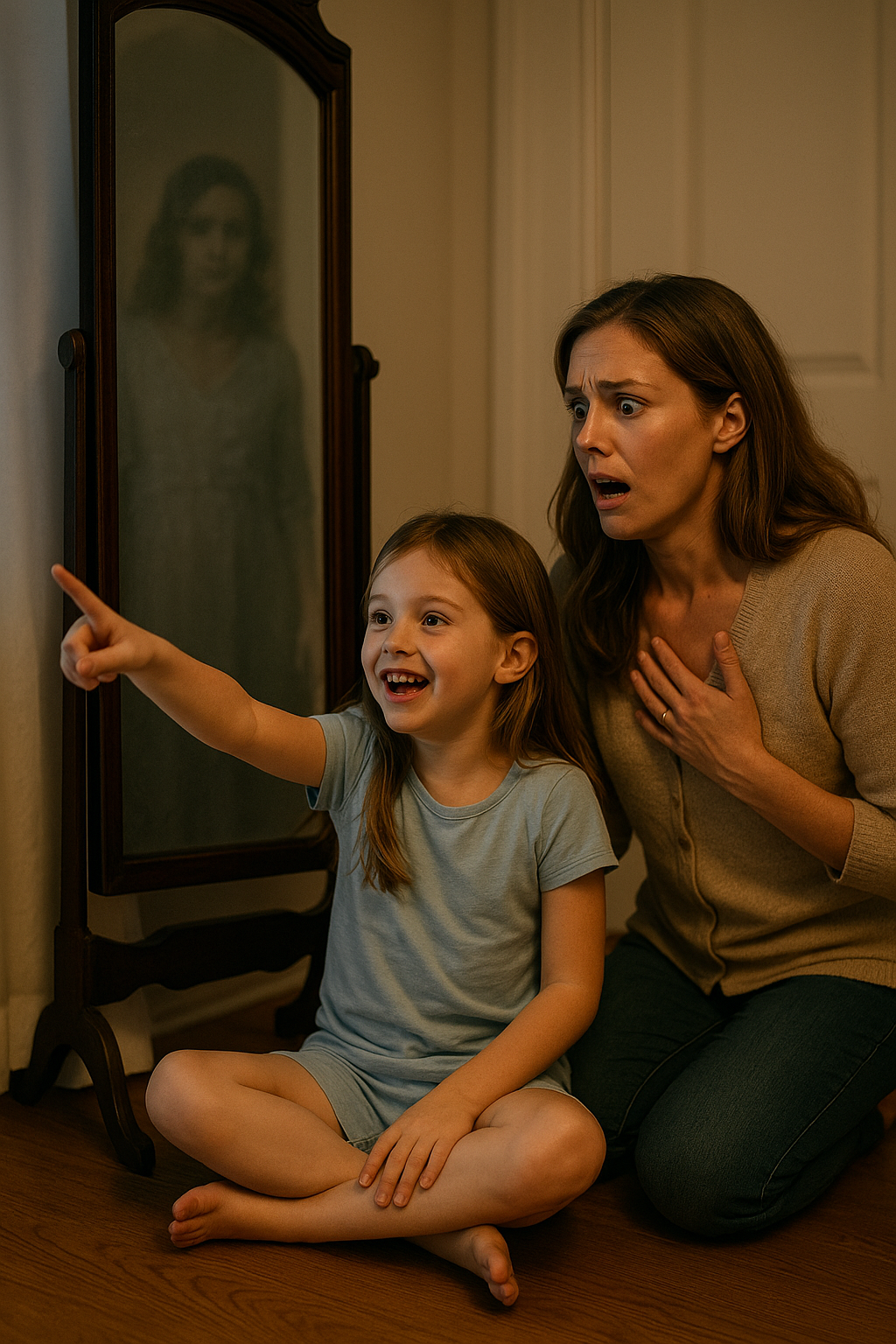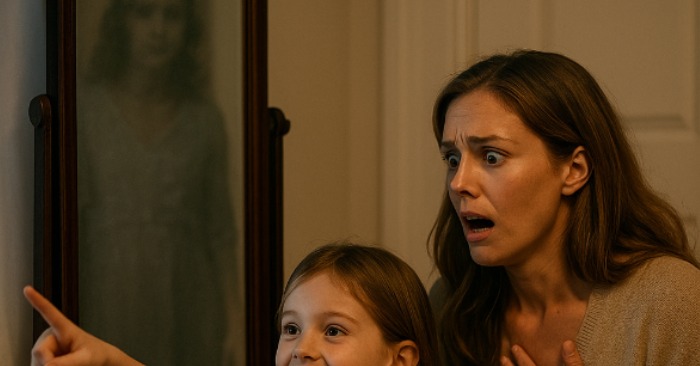 Εκείνο το βράδυ, η Έμιλι στάθηκε στο δωμάτιο της Χλόη πολύ μετά που η κόρη της είχε αποκοιμηθεί. Ο καθρέφτης αντανακλούσε το ανήσυχο πρόσωπό της. Για μια στιγμή, νόμιζε ότι είδε μια λάμψη — όχι το δικό της είδωλο, αλλά το αχνό περίγραμμα μιας γυναίκας που στεκόταν ακριβώς πίσω από τον ώμο της.