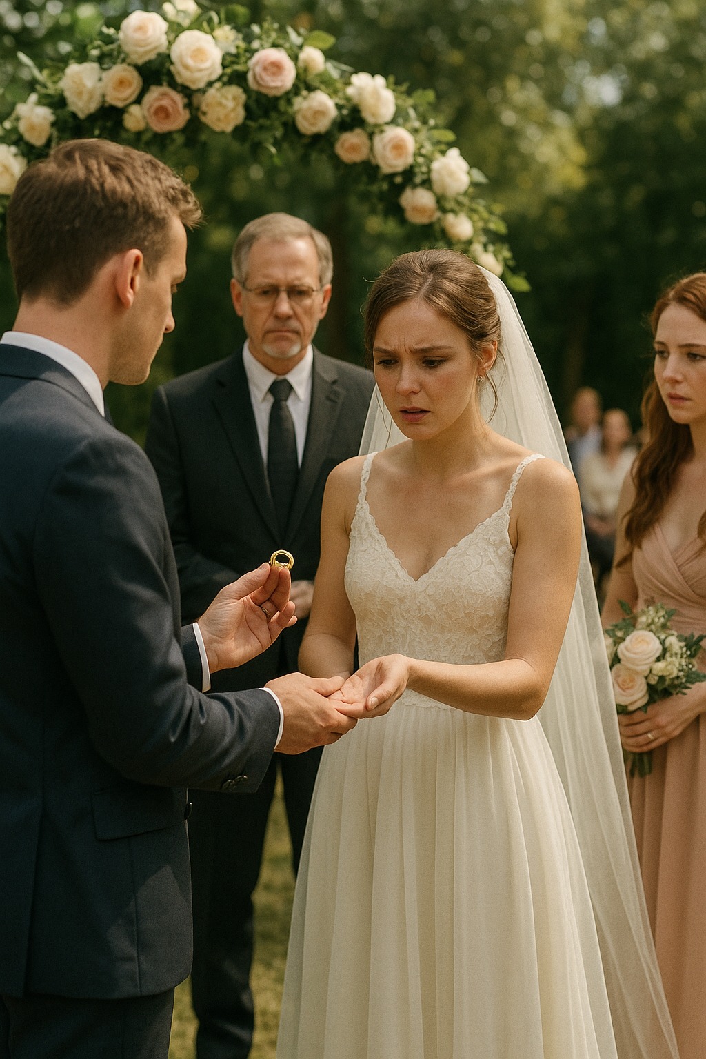 Αλλά τη στιγμή που ο ιερέας είπε: «Ανταλλάξτε δαχτυλίδια», συνέβη κάτι που κανείς δεν μπορούσε να προβλέψει.