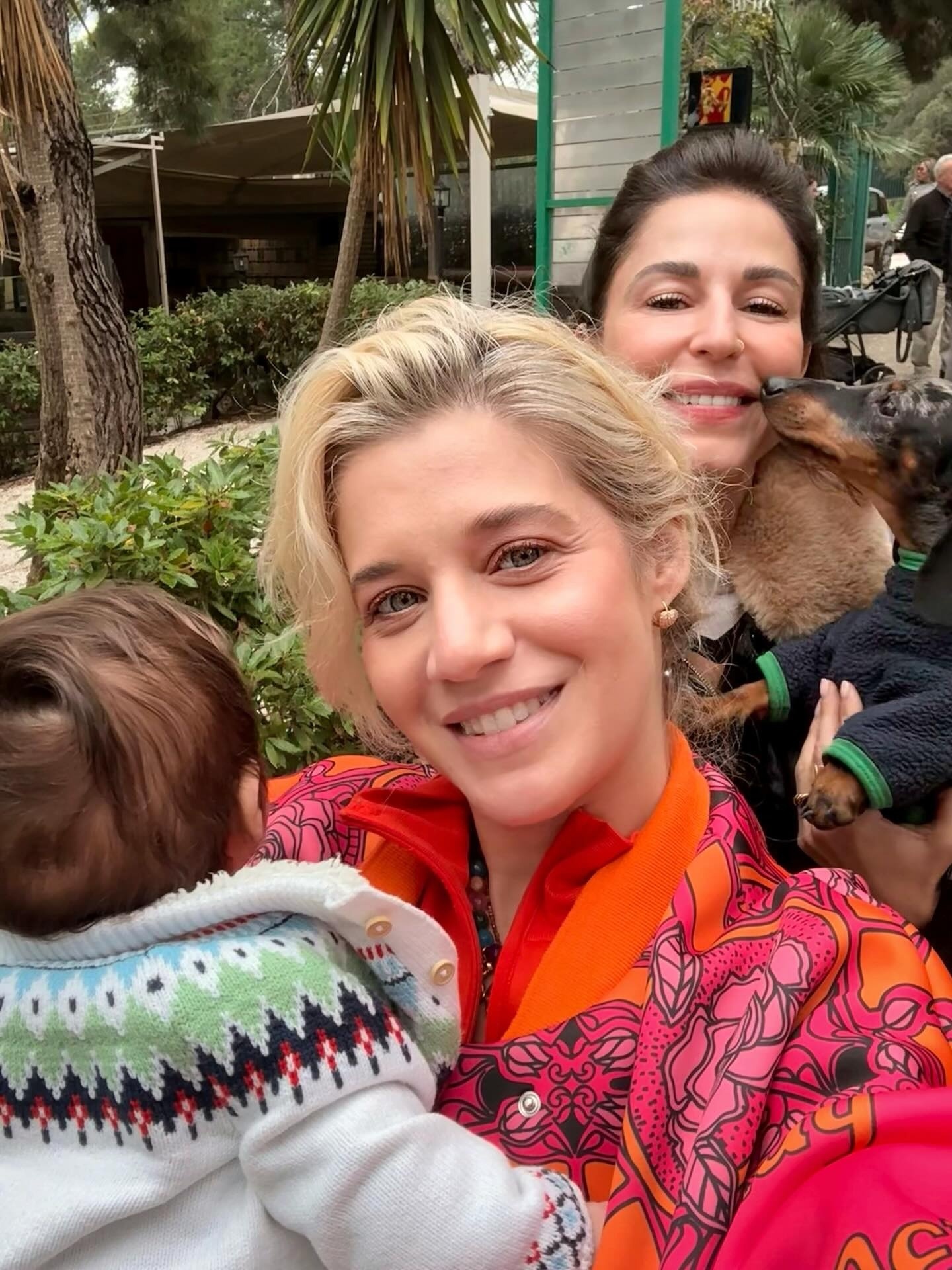 Η Τζένη Θεωνά κρατούσε στην αγκαλιά της τον γιο της, ενώ η Κατερίνα Παπουτσάκη είχε στο πλευρό της το σκυλάκι της. Μια εικόνα καθημερινή, αλλά ταυτόχρονα γεμάτη συναίσθημα, που έδειχνε πως η ζωή εκτός πλατό έχει τον δικό της πρωταγωνιστικό ρόλο.