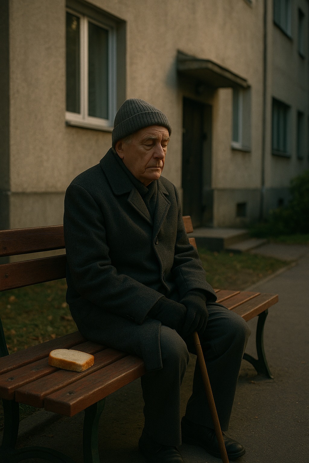 Τώρα το πρωί το ψωμί δεν βρίσκεται στο παγκάκι — το τρώνε τα πουλιά. Αλλά πάντα κάποιος βάζει ένα φρέσκο κομμάτι δίπλα του.