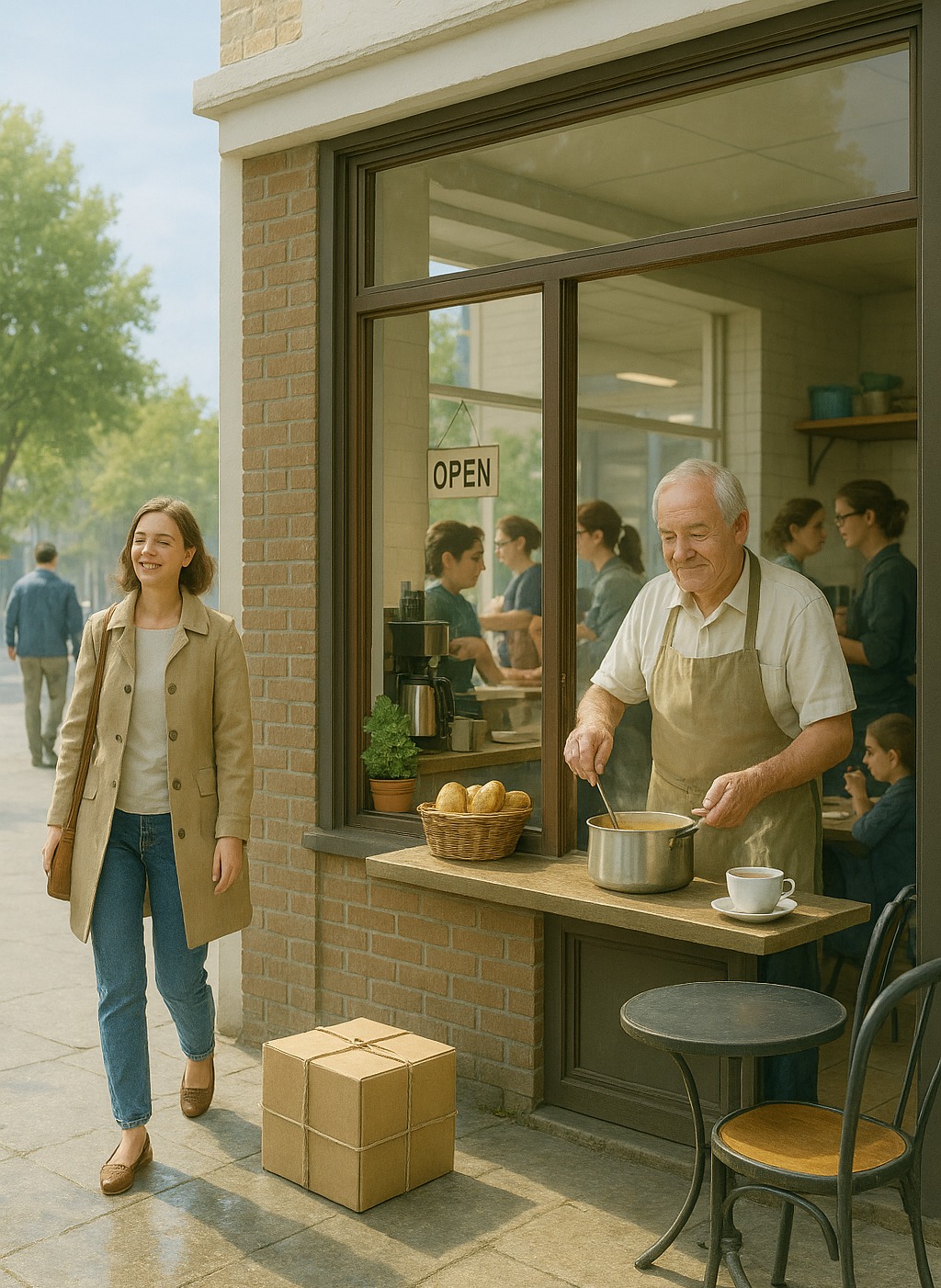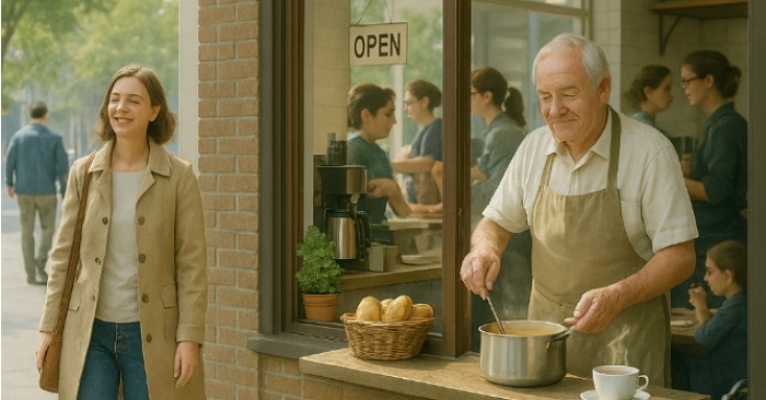Το μεσημέρι το καφέ γέμιζε με φωνές, ατμό, θόρυβο από τα πιάτα. Οι άνθρωποι έτρωγαν, γελούσαν, διαφωνούσαν. Έφερνε πιάτα, σκούπιζε τον πάγκο και μερικές φορές έπιανε τον εαυτό του να σκέφτεται: ίσως κάποιος από αυτούς είχε κάποτε περάσει εκείνη την πολύ δύσκολη μέρα. Απλά τώρα γελούσαν.