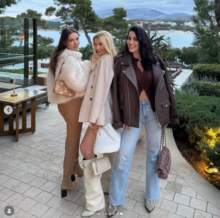 Σε μία από τις φωτογραφίες που ανέβασε στο Instagram, ποζάρει χαμογελαστή δίπλα στις κολλητές της, με φόντο το απέραντο γαλάζιο. Στη λεζάντα έγραψε απλά «Sunday-Funday 🤎», αποτυπώνοντας τη διάθεση της ημέρας.