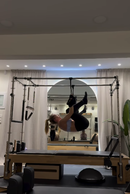 Στο πρόγραμμά της περιλαμβάνονται διαφορετικά είδη άσκησης, όπως pilates, padel, τρέξιμο αλλά και προπόνηση στο σπίτι. Μέσα από αυτή την ποικιλία, διατηρεί το σώμα της ενεργό και σε καλή κατάσταση, χωρίς να μένει σε μία μόνο ρουτίνα.