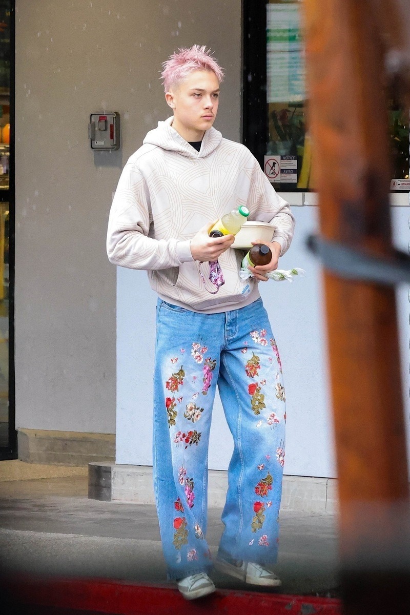 Οι παπαράτσι τον φωτογράφησαν τη στιγμή που διέσχιζε το δρόμο, σαν να ήταν εντελώς βυθισμένος στις σκέψεις του. Παρά την παρουσία των καμερών, ο έφηβος δεν φαινόταν να ντρέπεται.
