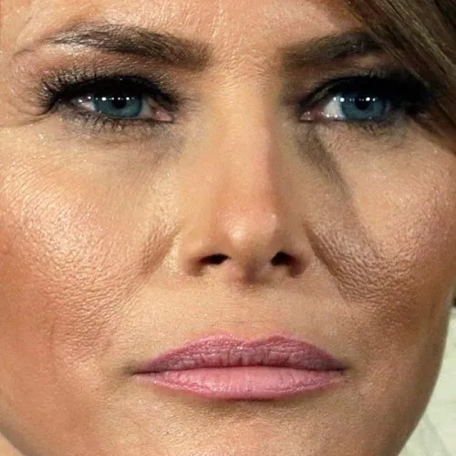 Η πρώην πρώτη κυρία δεν κρύβει εδώ και καιρό ότι έχει υποβληθεί σε πλαστικές επεμβάσεις. Ωστόσο, το μακιγιάζ από κοντά αποκαλύπτει όλα όσα συνήθως κρύβουν τα φίλτρα: ο τόνος δεν είναι ομοιόμορφος, το bronzer μπαίνει στους πόρους και το κραγιόν ξηραίνει τα χείλη. Στη φωτογραφία χωρίς ρετούς, η Μελάνια δεν φαίνεται πλέον άψογη — και αυτό είναι φυσιολογικό.