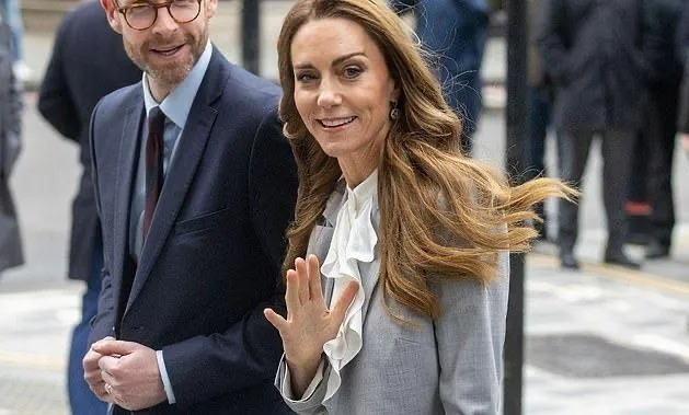 Η Κέιτ εμφανίστηκε στο κοινό με ένα λιτό γκρι κοστούμι, εμφανιζόμενη συγκεντρωμένη και σίγουρη. Χαιρέτησε τους συμμετέχοντες στη συνάντηση με ιδιαίτερη ζεστασιά.