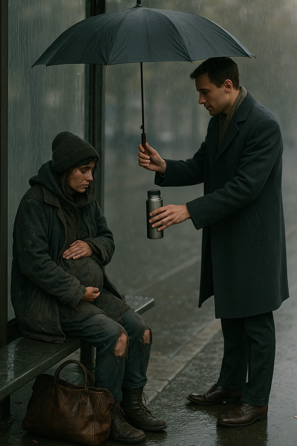 Μια ώρα αργότερα, περπατούσαν ήδη στο δρόμο — αργά, κάτω από μια ομπρέλα.