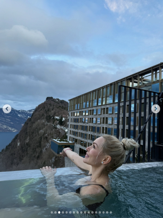 Η Βίκυ Κάβουρα μοιράστηκε στιγμές από το ταξίδι τους μέσα από αναρτήσεις, με εικόνες που τράβηξαν αμέσως την προσοχή. Σε κάποιες από αυτές, η ηθοποιός απολαμβάνει βουτιές σε θερμαινόμενη πισίνα την ώρα που γύρω της όλα είναι παγωμένα, ενώ σε άλλες φαίνεται να πίνει τον καφέ της ή να γυμνάζεται με φόντο το κατάλευκο τοπίο.