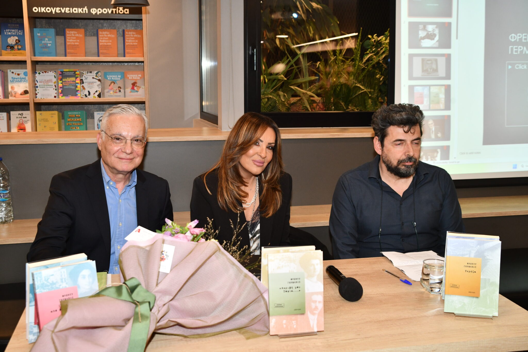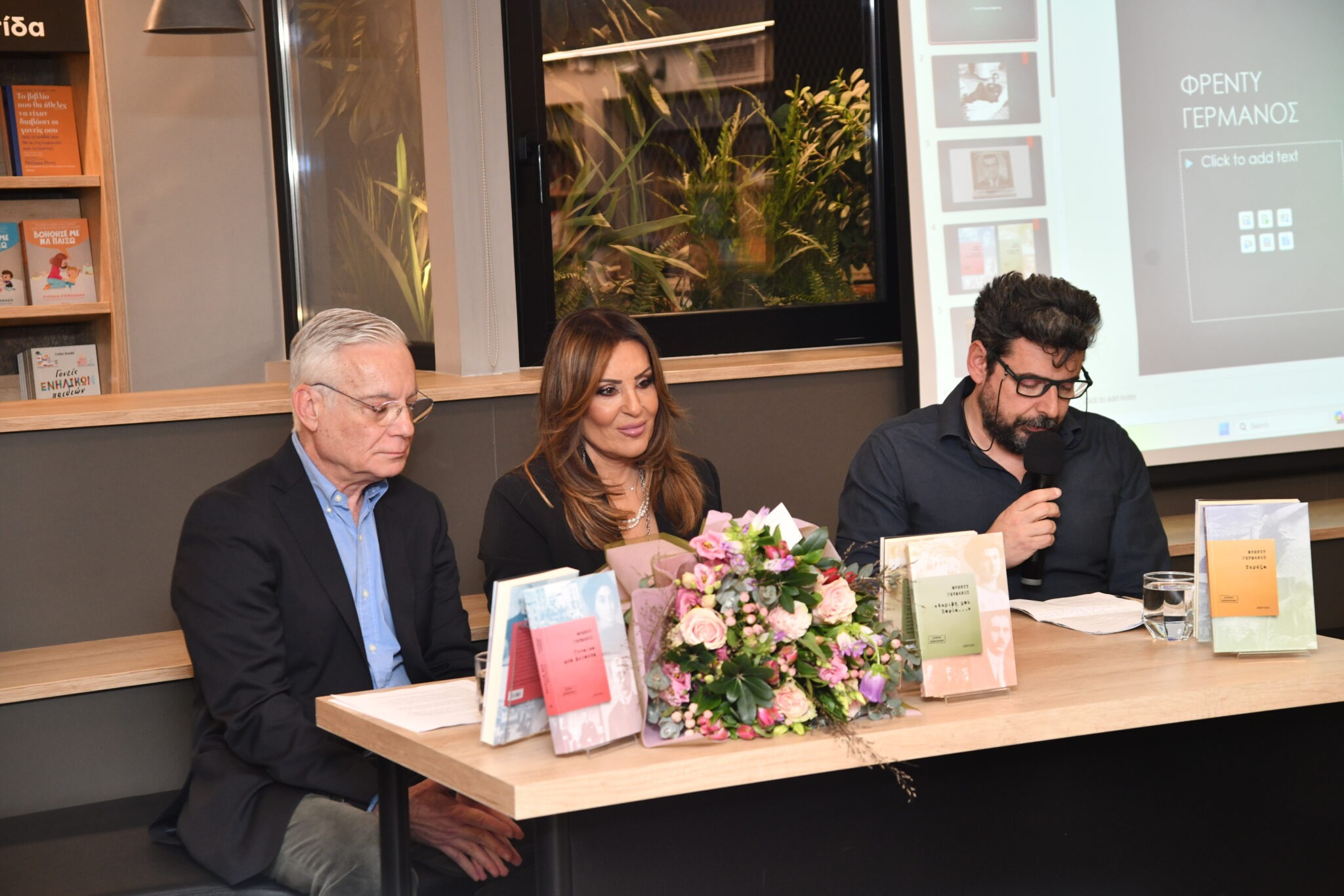 Η Ναταλία Γερμανού μίλησε με συγκίνηση για τον πατέρα της, έχοντας στο πλευρό της τον δημοσιογράφο και συγγραφέα Νίκο Βατόπουλο και τον υπεύθυνο των εκδόσεων Φιλήμονα Πατσάκη. Τα λόγια της ανέδειξαν την αγάπη και το σεβασμό που νιώθει για τη ζωή και το έργο του Φρέντυ Γερμανού.