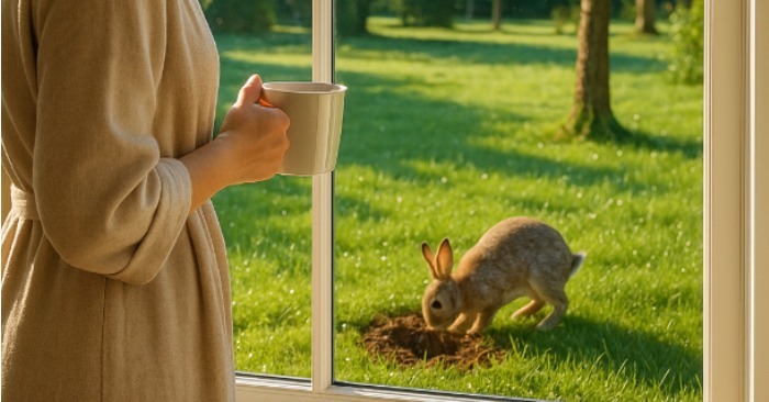 Η Άννα στεκόταν στο παράθυρο με ένα φλιτζάνι καφέ, όταν παρατήρησε ότι το κουνέλι έσκαβε το χώμα κάτω από την ανθοπαρτέρι.