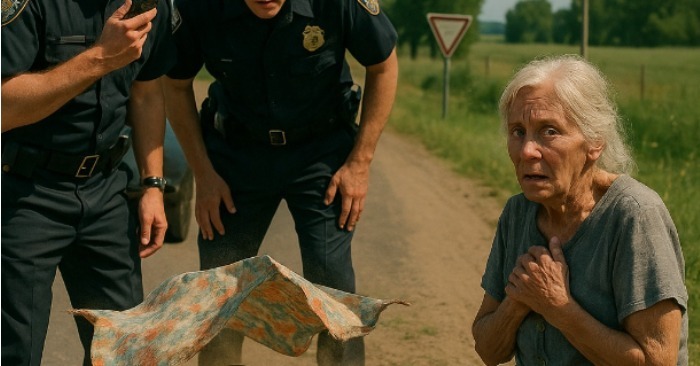 Όταν το περιπολικό σταμάτησε δίπλα στο πάγκο της, η γιαγιά αρχικά τρόμαξε.