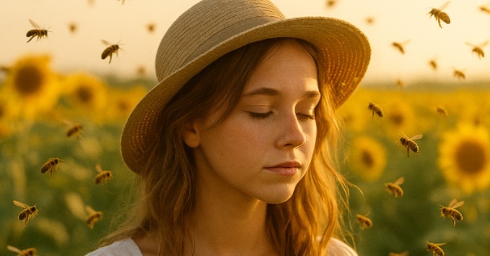 Ούτε φόβο, ούτε πόνο — μόνο ήλιο, μυρωδιά μελιού και χιλιάδες μικροσκοπικά πλάσματα που απλώς κάνουν τη δουλειά τους.