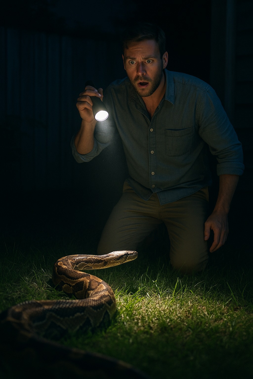 Αλλά μια νύχτα άκουσα ένα παράξενο θρόισμα στην πίσω αυλή. Αρχικά σκέφτηκα ότι ήταν γάτα. Βγήκα με το φακό και πάγωσα. Ένα τεράστιο φίδι σέρνονταν στο γρασίδι. Κατάλαβα αμέσως ότι ήταν το φίδι του γείτονα.