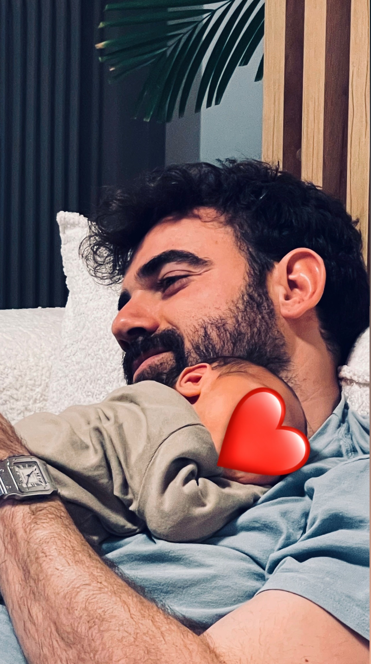 Λίγες ημέρες αργότερα, ο Νίκος Πολυδερόπουλος επέλεξε να μοιραστεί δημόσια ένα πολύ προσωπικό στιγμιότυπο. Δημοσίευσε την πρώτη του φωτογραφία με τον νεογέννητο γιο του, αποτυπώνοντας μια ήρεμη και τρυφερή στιγμή. Στο καρέ, ο ηθοποιός φαίνεται χαμογελαστός και γαλήνιος, ενώ το μωρό κοιμάται ήσυχα στην αγκαλιά του.