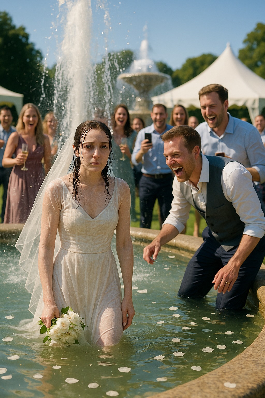 Το σιντριβάνι ξεχείλισε, το φόρεμα βαρύνεψε αμέσως, το νερό έλουσε το πρόσωπό μου.