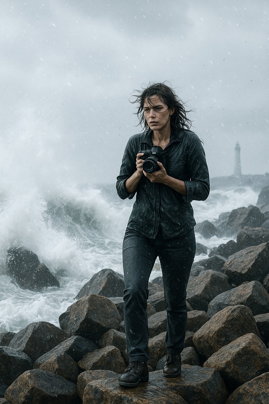 Η θάλασσα βούιζε, σαν να ανέπνεε. Ο αέρας ήταν πυκνός, βαρύς, μύριζε σίδερο και αλάτι. Η Έμμα περπατούσε πάνω στην βρεγμένη άμμο, κρατώντας σφιχτά τη φωτογραφική μηχανή της κάτω από το σακάκι της. Ο άνεμος φυσούσε πλάγια, τα κύματα έγλειφαν τις άκρες των μπότες της και ο ουρανός φαινόταν πολύ χαμηλός – σαν να ήθελε να τη συντρίψει.