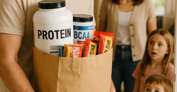 Πέρασαν σαράντα λεπτά. Είχα ήδη αρχίσει να ανησυχώ όταν επέστρεψε. Και τότε σχεδόν έπεσα από την έκπληξη: αντί για μια σακούλα με ψωμί, έφερε ένα τεράστιο κουτί με αθλητικά τρόφιμα — πρωτεΐνες, μπάρες, ακόμη και κάποιες κονσέρβες με τις επιγραφές «BCAA» και «κρεατίνη».