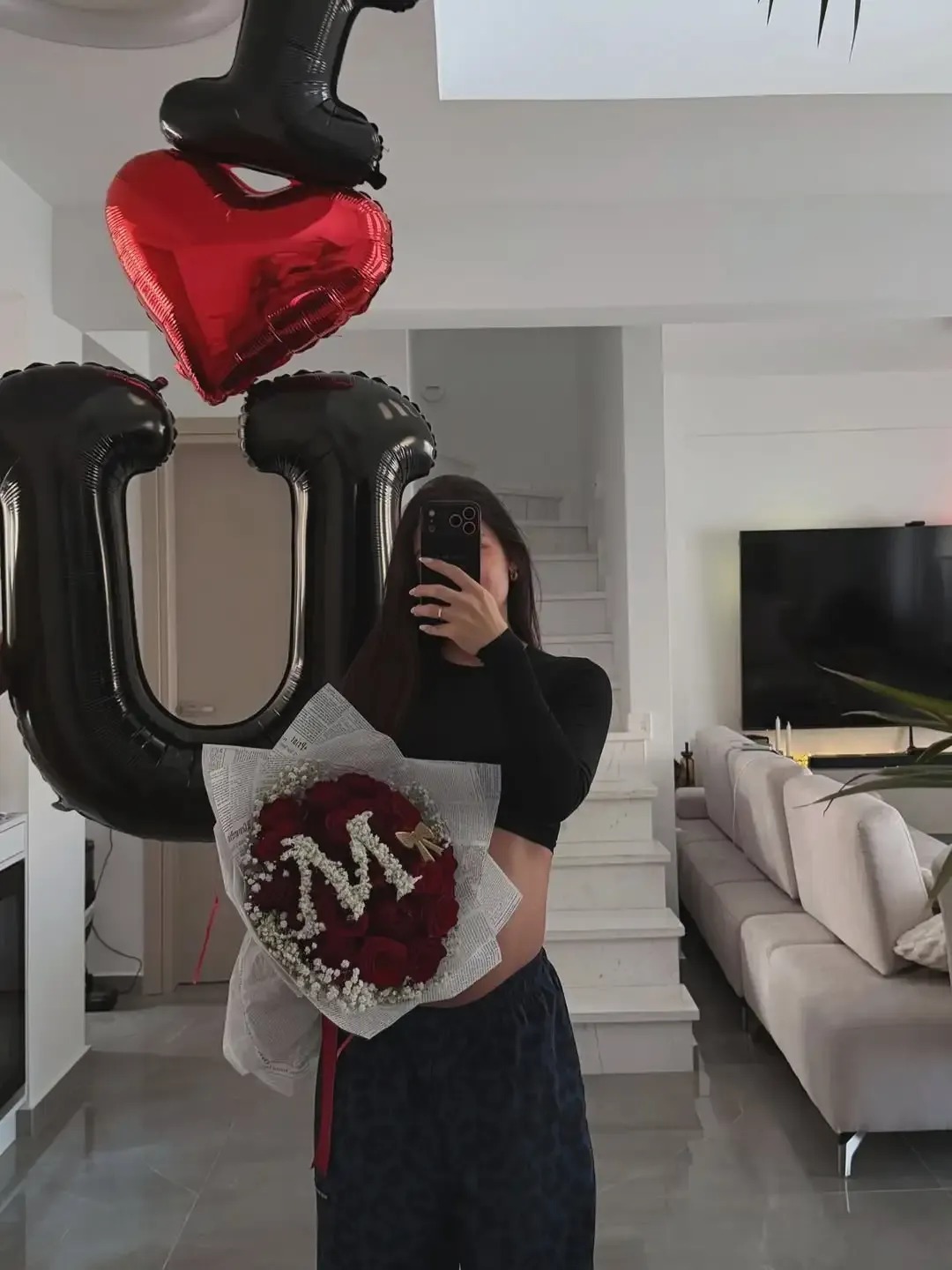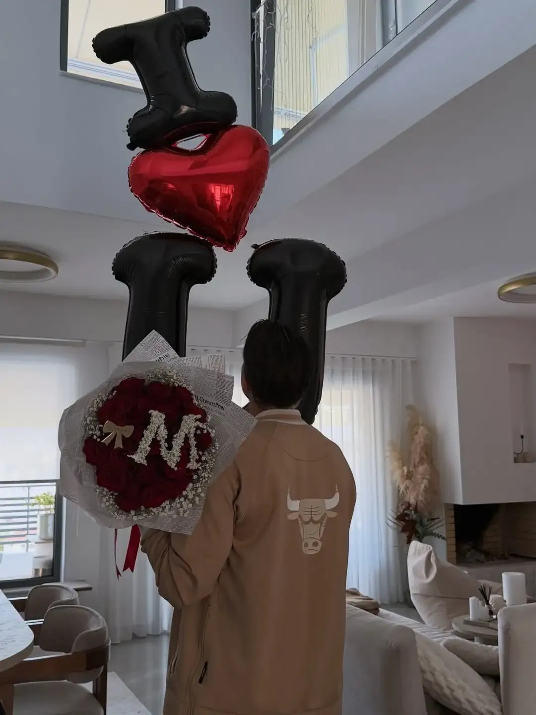 Μέσα σε αυτό το κλίμα, ο Σάκης φρόντισε να κάνει τη μέρα ακόμη πιο ιδιαίτερη. Χωρίς υπερβολές αλλά με έντονο ρομαντισμό, ετοίμασε μια έκπληξη που είχε ξεκάθαρο προσωπικό χαρακτήρα. Ένα εντυπωσιακό μπουκέτο τριαντάφυλλα, διαμορφωμένα στο αρχικό γράμμα του ονόματός της, «Μ», κυριάρχησε στο σκηνικό, ενώ τα μπαλόνια με το μήνυμα «I Love You» συμπλήρωσαν την ατμόσφαιρα.
