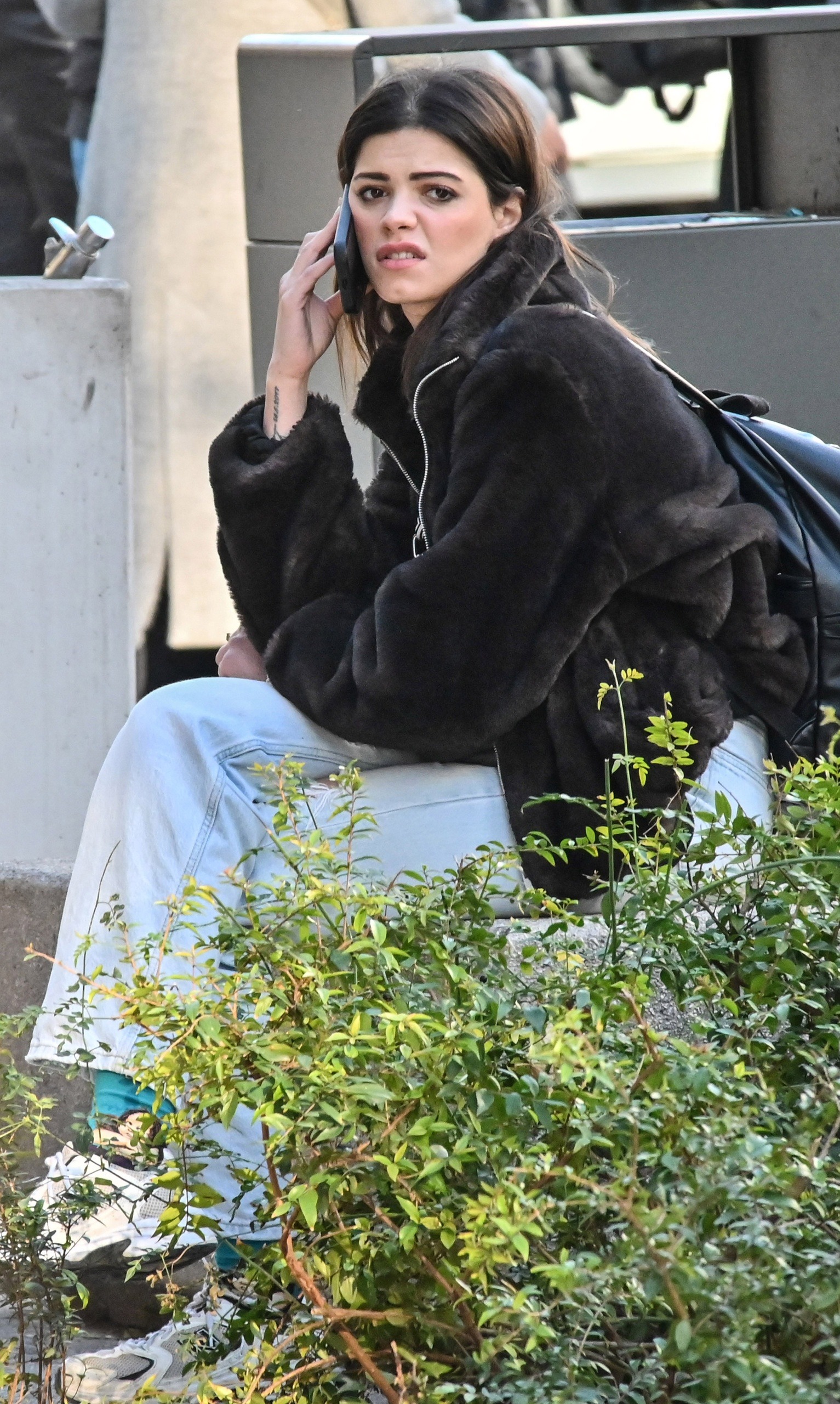 Φορούσε τζιν παντελόνι, sneakers και ένα γούνινο μπουφάν, δημιουργώντας ένα σύγχρονο look που ταίριαζε απόλυτα στο αστικό σκηνικό.