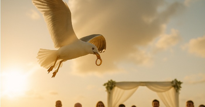 Το φόρεμα της νύφης κυμάτιζε σαν πανί, και για μια στιγμή όλα έμοιαζαν εύθραυστα, έτοιμα να καταρρεύσουν.