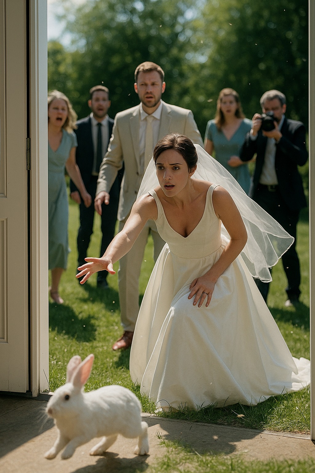 Το κουνελάκι ξέφυγε, πήδηξε στο πάτωμα και έτρεξε σαν βέλος προς την πόρτα.
