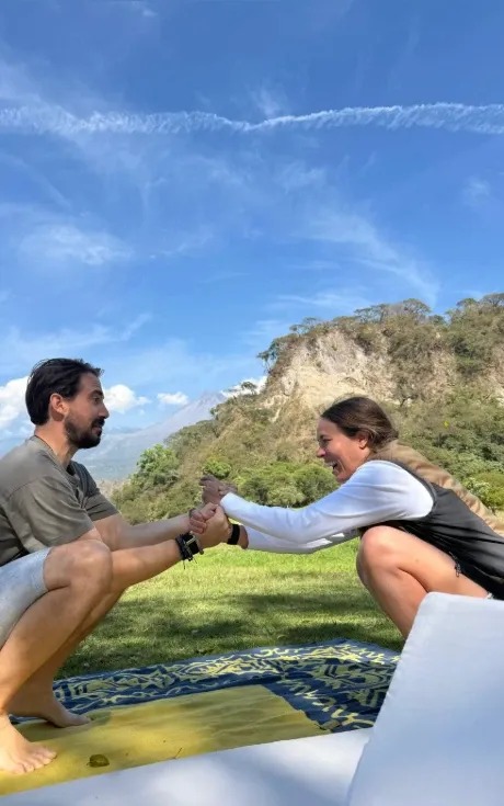 Σε μία από τις φωτογραφίες που δημοσίευσε η Νίνα Φλορ, το ζευγάρι ποζάρει χαμογελαστό μπροστά σε επιβλητικά βουνά, δείχνοντας χαλαρό και απόλυτα συγχρονισμένο. Σε ένα άλλο στιγμιότυπο, δοκιμάζουν τις ισορροπίες τους πάνω σε ένα χαλί στρωμένο στο γρασίδι, επιδιδόμενοι σε ένα παιχνίδι δύναμης και συγκέντρωσης, με διάθεση παιχνιδιάρικη και ανεπιτήδευτη. Η οικειότητα και η άνεση μεταξύ τους είναι εμφανείς.