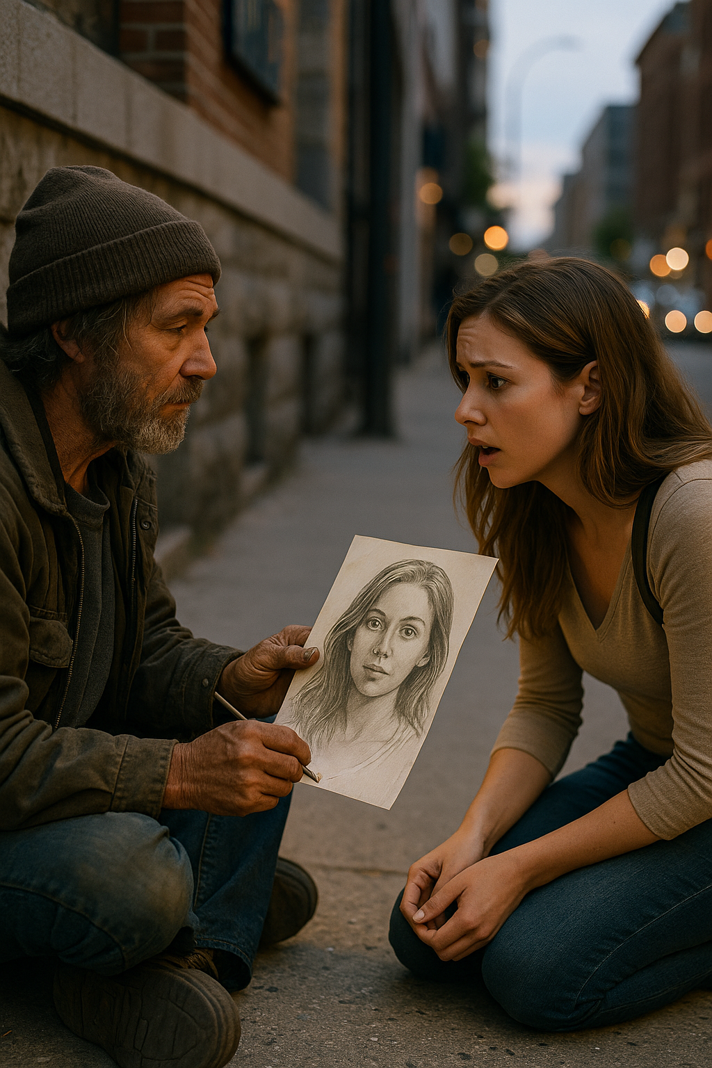 Ο άντρας ζωγράφιζε. Σε ένα κομμάτι χαρτόνι, με ένα μολύβι, ζωγράφιζε ένα πορτρέτο — της ίδιας. Η ομοιότητα ήταν εκπληκτική, κάθε λεπτομέρεια ακριβής.