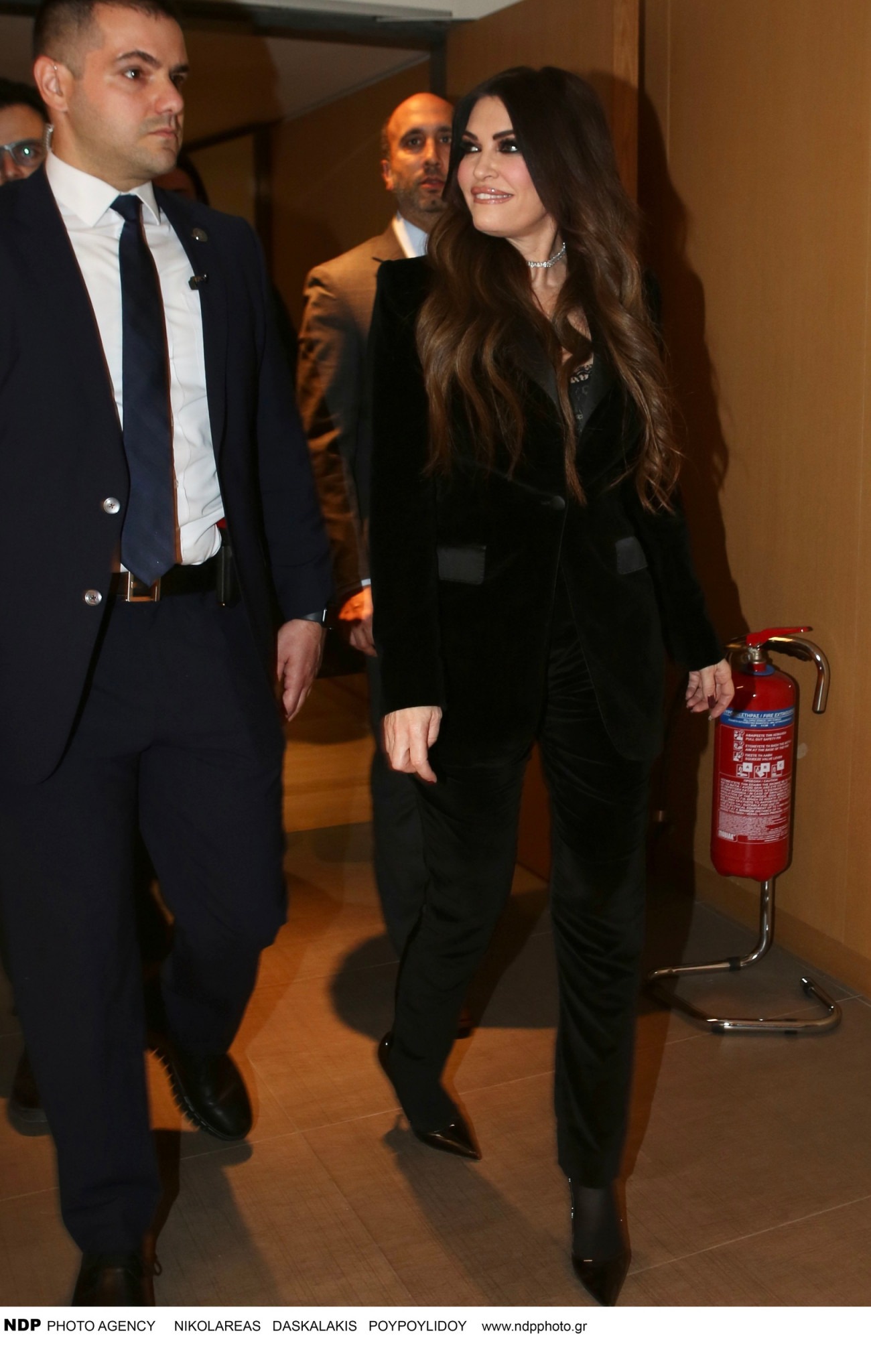 Πιστή στο signature στιλ της, κινήθηκε ξανά στο total black, μια επιλογή που σπάνια εγκαταλείπει και που εδώ λειτούργησε ιδανικά. Κεντρικό κομμάτι του look ήταν ένα chic βελούδινο blazer σε μαύρο, ένα ύφασμα που συνδέεται διαχρονικά με πολυτέλεια και σοβαρότητα. Η διακριτική λάμψη του βελούδου έδωσε βάθος στο σύνολο και πρόσθεσε έναν ήπια βραδινό χαρακτήρα, χωρίς να αλλοιώσει τον επίσημο τόνο της εκδήλωσης.