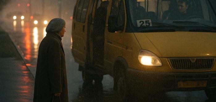 Η βροχή άρχισε ξαφνικά — δυνατή, κρύα, φθινοπωρινή. Οι δρόμοι σκοτείνιασαν, οι άνθρωποι κρύφτηκαν κάτω από ομπρέλες, τα λεωφορεία και τα μινιμπάς κινούνταν πιο αργά απ’ το συνηθισμένο.