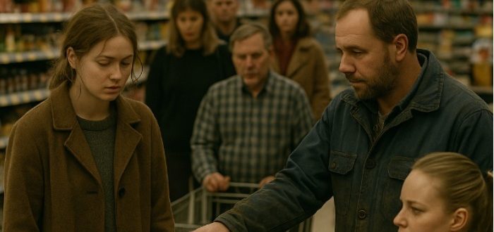 Η ουρά στο σούπερ μάρκετ προχωρούσε αργά. Οι άνθρωποι ήταν κουρασμένοι, κάποιοι γκρίνιαζαν, άλλοι κοίταζαν τα κινητά τους. Η ταμίας — νέα, με έντονο κραγιόν και ενοχλημένο ύφος
