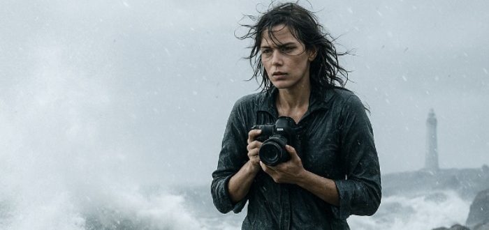 Η θάλασσα βούιζε, σαν να ανέπνεε. Ο αέρας ήταν πυκνός, βαρύς, μύριζε σίδερο και αλάτι. Η Έμμα περπατούσε πάνω στην βρεγμένη άμμο, κρατώντας σφιχτά τη φωτογραφική μηχανή της